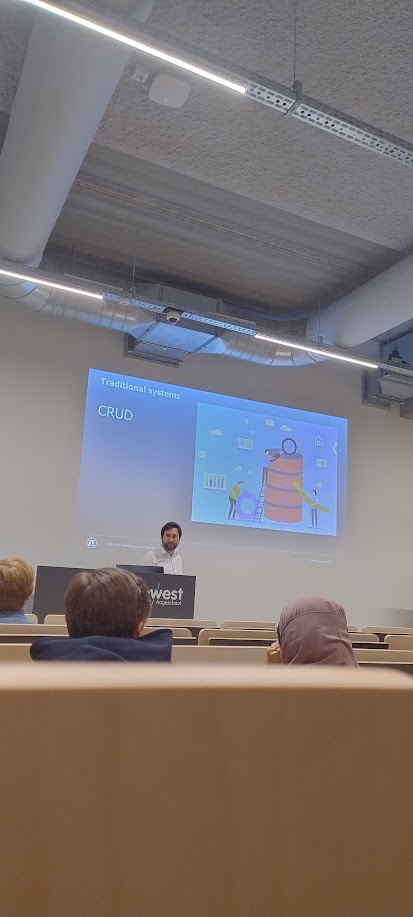 On May 27, 2025, I went to a Tech&Meet session at Howest Brugge, the session was called "Event Sourcing and CQRS for Dummies," and it was led by Kim Van Renterghem. Kim's a senior dev over at zf-scalar, and he broke things down in a really digestible way. He talked about how standard CRUD setups can't really preserve the history of changes, which ends up being a pain when you need to debug or audit stuff later on.